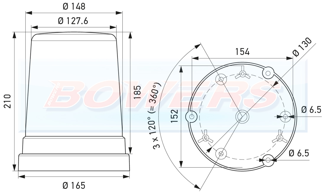 Dimensions: 210mm (Height) x 165mm (Dia)