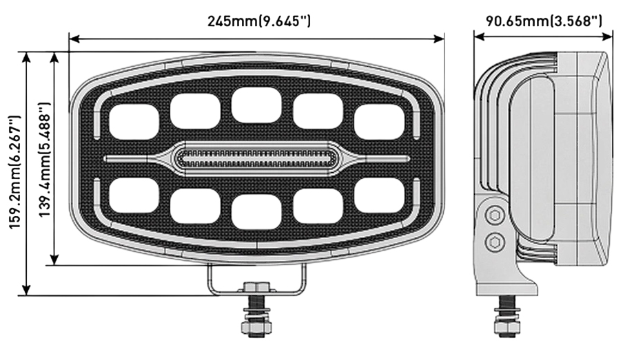 Dimensions: 245mm (Length) x 90.65mm (Depth) x 159.2mm (Height from mounting point)