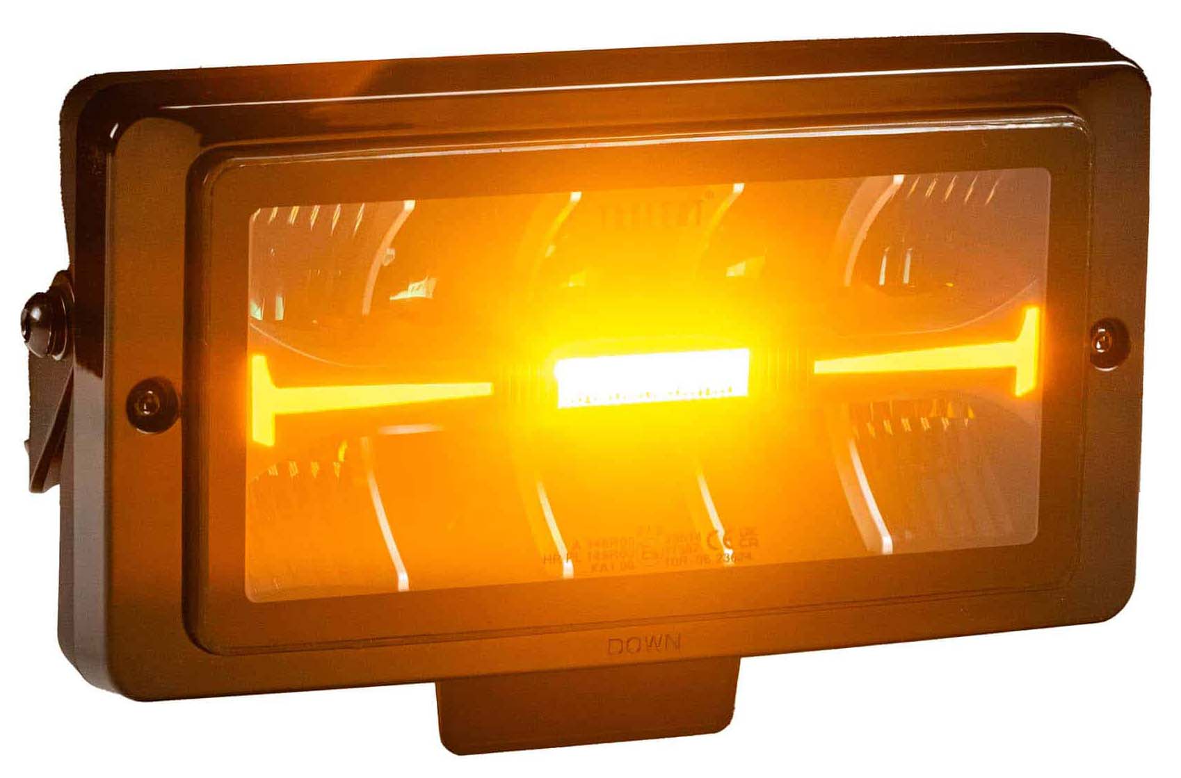 This LED driving light features a warning light function and is equipped with amber-white dual-colour position lights. The open wire end and 300 cm long cable allow adaptation to specific installations. The dimensions of 250 x 137 x 89.2 mm make the unit compatible with common mounting surfaces. The driving lights meet IP69K and are certified according to CE, ECE-R10, ECE-R148, ECE-R149 and ECE-R65.